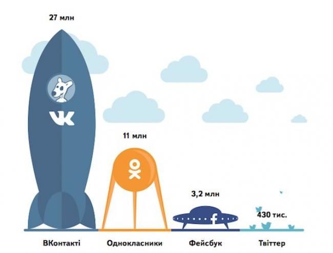 Понад 40 мільйонів українських акаунтів зареєстровано станом на початок цього літа в соцмережах — у ВКонтакті, Однокласниках, Фейсбуці та Твіттері.