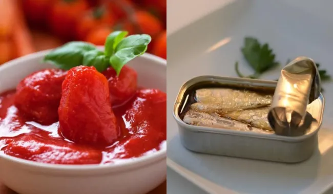 У списку є консервовані помідори і сардини.
