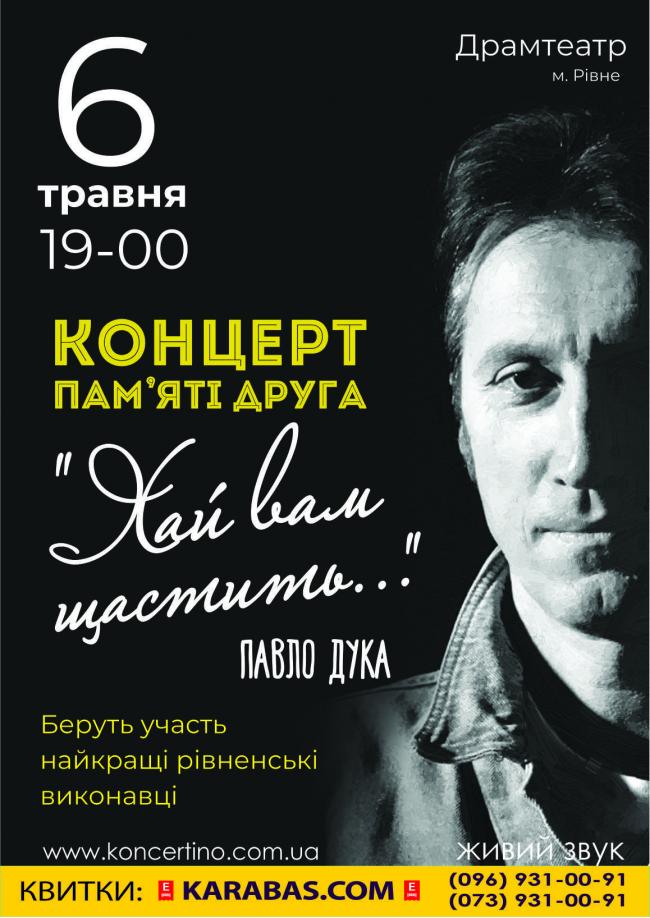 Концерт запланована на 19:00 6 травня. Квитки коштують 50 грн. Придбати їх можна у касі драмтеатру та онлайн.