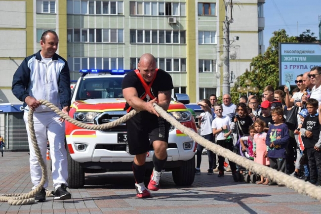 Найсильніший рятувальник показав рівнянам, як може сам зрушити з місця кілька авто