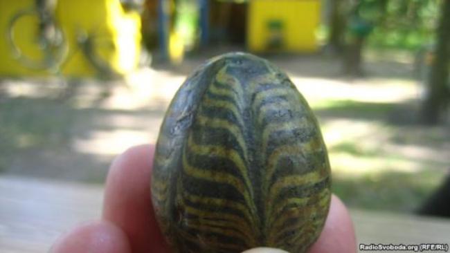 – На Волині це перша ціла, настільки старовинна писанка. Раніше в курганах знаходили шматочки. Ціна писанки неймовірна. І ще калатає – так, ніби її вчора зробили. Глибоко етнографічна річ. По ній хвилі – як символ води, і символ родючості – колоски. Закладали в це сакральний смисл, безперечно. Вони туди камінець клали, потім заліплювали глиною, і виходила така колотушка.