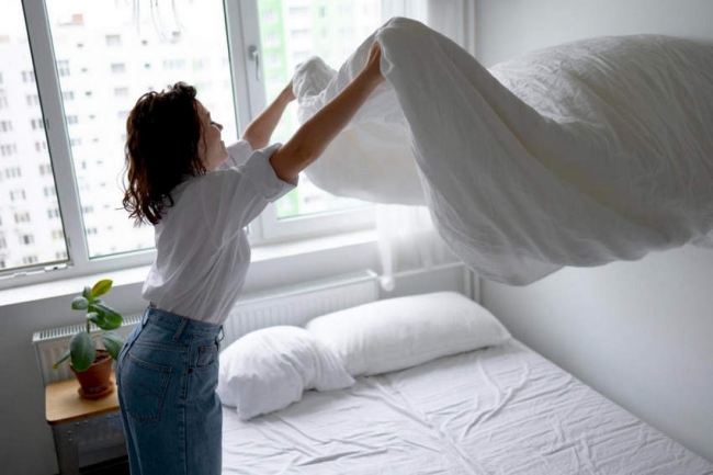 Як довго потрібно провітрювати ліжко? Враховуючи, що середньостатистична людина виділяє 500 мл поту за ніч, важливо залишати своє ліжко незастеленим щонайменше на 30 хвилин, щоб забезпечити кращу вентиляцію, яка допомагає розсіювати вологу і знижує загальну вологість у вашому ліжку.