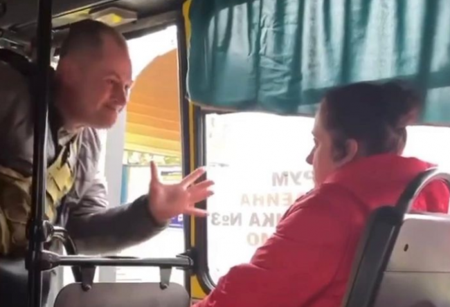 Неадекватний чоловік у військовій формі кидався на рівнянку в маршрутці (ВІДЕО)