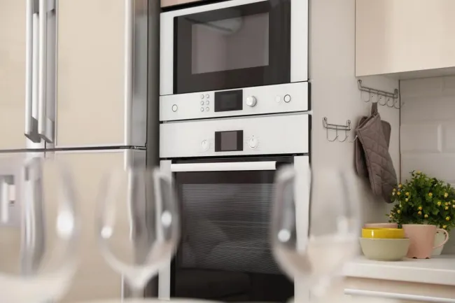 Найкраще розташування мікрохвильовки – на стіні, куди вона кріпиться за допомогою кронштейнів. Також піч можна поставити на робочу поверхню (якщо вона дозволяє) або ж заздалегідь передбачити варіант і вбудувати її в кухонний гарнітур.