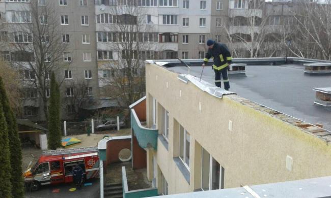 З даху дошкільного-навчального закладу №57 вітер зірвав з покрівлі три металевих листи. Ніхто під час цього «польоту» не постраждав.