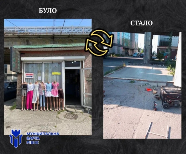 Новини Нелегальний кіоск «попросили» з території біля ринку Дикого А з іншої вулиці прибрали старий гараж. admin 18 Червня 2025, 15:40 0 хв. читання Поділитися У місті знову поменшало самовільно встановлених МАФів – під знос ідуть і незаконні торгові ятки, і гаражі. Про це на своїй фейсбук–сторінці розповіла рівненська мунварта. У Острозі зустріли з полону Олександра Тимощука Згорніть їх разом, як рулет Біля автовокзалу в Рівному відкрили ТЦ «Колорит» з дизайнерським «Сільпо» Чи зростуть ціни на пальне після удару по мосту на Одещині? Енергетиці Рівненщині ще треба багато часу, щоб відновитися після атак Росії Поділитися цією статтею Facebook Telegram Копіювати посилання Приєднуйтесь 58тисСтежити1.2тисСтежити13.9тисСтежити6.1тисПідписатися Читайте нас у Telegram: тільки важливі та перевірені новини Новини 20 Грудня 2025 У Острозі зустріли з полону Олександра Тимощука 12:43 Згорніть їх разом, як рулет 11:58 Біля автовокзалу в Рівному відкрили ТЦ «Колорит» з дизайнерським «Сільпо» 11:47 Чи зростуть ціни на пальне після удару по мосту на Одещині? 11:43 Енергетиці Рівненщині ще треба багато часу, щоб відновитися після атак Росії 11:00 Рівнян просять приєднатися до супроводу полеглих Захисників України 10:53 У Рівному вручать Меморіальні хрести родинам загиблих воїнів 5-ї штурмової бригади 10:30 30 тисяч гривень заплатили жителі Рівненщини за неіснуючі ялинки 10:04 «Живим коридором» на Рівненщині зустріли загиблого Героя Назара Панькевича 09:30 Почім матюки для депутата у Рівному? 09:10 Всі новини