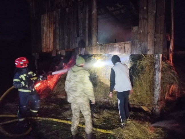 Учора о 21:15 до рятувальників надійшло повідомлення про пожежу у приватному господарстві на вулиці Центральній в селі Дерть. Як розповіли у ГУ ДСНС у Рівненській області, вогонь знищив дерев’яний піднавіс для сіна розміром 6 х 5 м, що був критий шифером та стіг сіна вагою 2 тонни.