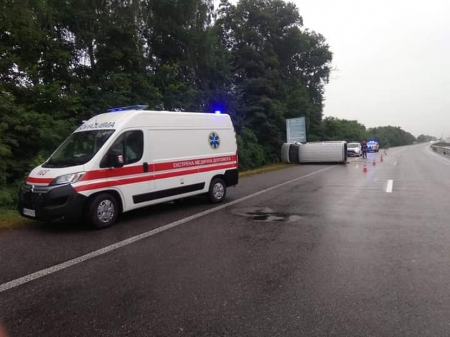 Прибувши до місця ДТП, рятувальники побачили перекинутий на бік мікроавтобус Toyota.