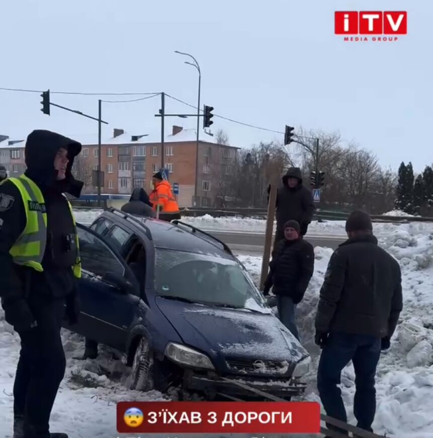 Позашляховик опинився в снігу, бо з’їхав з дороги. Сталося це у селі Біла Криниця, якраз за пішохідним переходом. На місці працює патрульна поліція.
