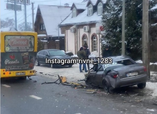 Неподалік Рівного «Audi» врізався у маршрутку (ВІДЕО)