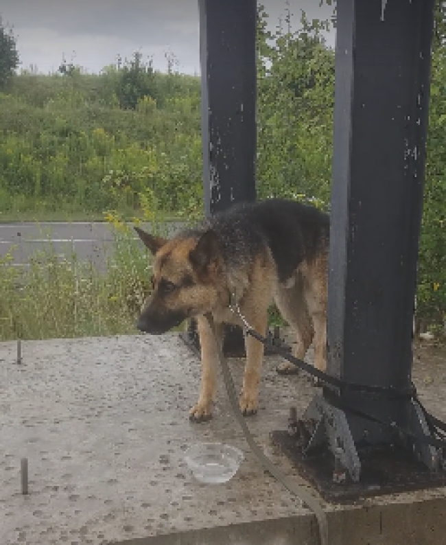 Неподалік Рівного вівчарку прив’язали до рекламного щита та покинули