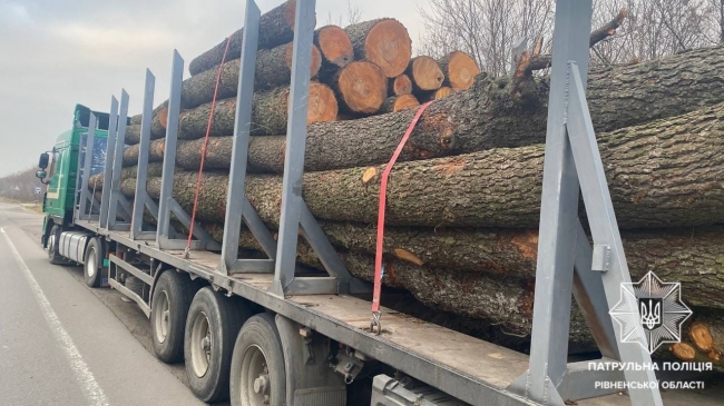 Сьогодні, близько 13.30, біля селища Великий Житин, патрульні зупинили вантажний автомобіль ДАФ, який перевозив лісоматеріал. Під час перевірки документів з’ясувалось, що в накладній був зазначений інший транспортний засіб, який мав перевозити лісоматеріал, а саме — Рено. Також на лісоматеріалі не було жодної бірки, в базі фактичні дані про лісову продукцію були відсутні та вбачались невідповідності у товаротранспортній накладній.