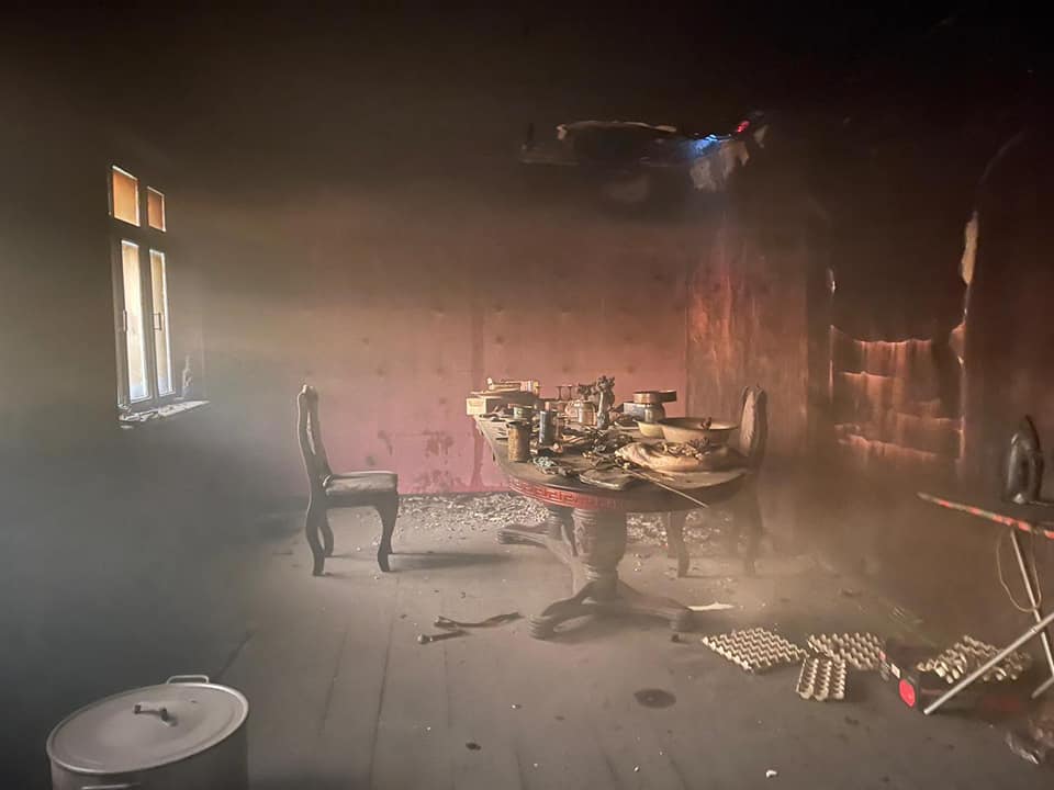 Також знищено меблі та речі домашнього вжитку в кімнатах житлового будинку розміром 9х7м та 15 м.кв. перекриття. Жертв та постраждалих немає.