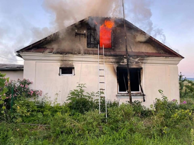 Також знищено меблі та речі домашнього вжитку в кімнатах житлового будинку розміром 9х7м та 15 м.кв. перекриття. Жертв та постраждалих немає.