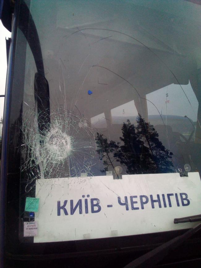 За свідченням водія, автобус рухався о 00.30 годині по вулиці Громадська у м. Чернігів, несподівано на дорогу вибігли невідомі люди у масках та почали бити автобус тупими предметами. В результаті нападу в автобусі пошкоджено лобове скло, та повністю вибиті бокові рами.