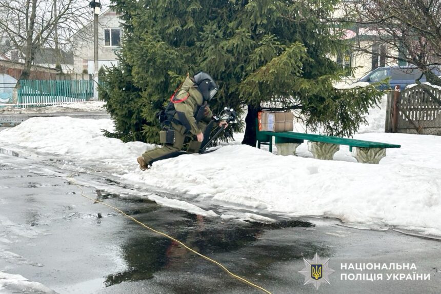 Сьогодні, 23 лютого, близько 13:00 житель села Моквин повідомив поліцію про підозрілий пакунок, який стояв на лавці біля будівлі сільської ради.