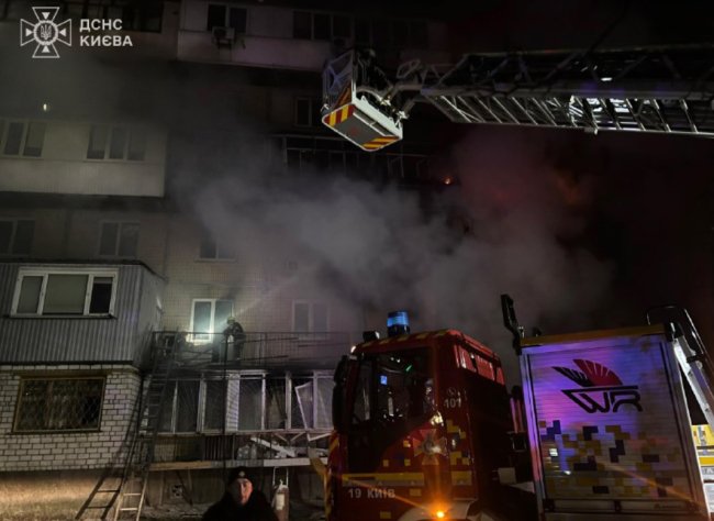 Уламки безпілотників влучали в житлові будинки в Оболонському та Деснянському районах, спричинивши пожежі. Вогонь швидко загасили рятувальники, але кілька поверхів будинків пошкоджені, вибито вікна, пошкоджено дах.
