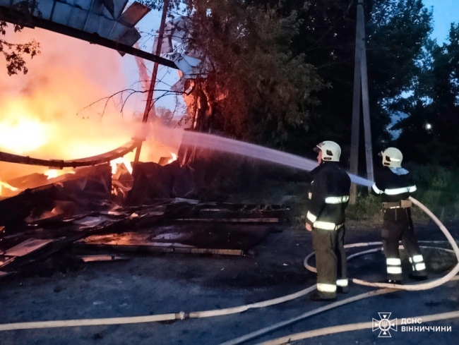 Уламки БПЛА впали на господарське приміщення лікарні в Могилів-Подільському Вінницької області. Внаслідок цього розпочалась пожежа, яка охопила площу в 600 квадратних метрів. Як повідомили в ДСНС, люди не зазнали травм та пошкоджень.