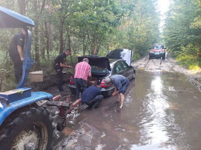 За допомогою трактора місцевого населення вдалося відбуксирувати автомобіль з ґрунтової пастки.