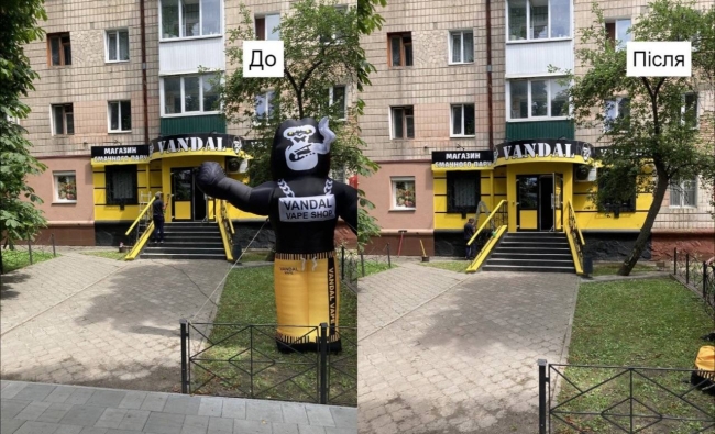 Зокрема, біля одного з магазинів підприємцям довелося прибрати надувну мавпу, що рекламувала вейп-шоп.
