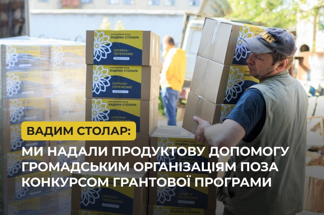 Однак неможливо було не враховувати той факт, що понад дві третини заявок стосувалися критично важливого питання продовольчої допомоги. Тому я запропонував, і команда це підтримала: забезпечити надання продуктової допомоги громадським організаціям, які подавалися на грантовий конкурс, але не пройшли його. Я твердо вірю у важливість підтримки таких громадських ініціатив, особливо в ці складні часи. Тому ми продовжуватимемо наші проєкти в цій сфері”, – зазначив засновник Фонду Вадим Столар.