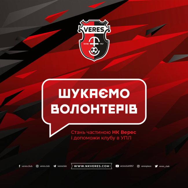 Наразі триває активна підготовка всіх структур НК Верес до старту в УПЛ. А це, як відомо, в рази вищий рівень змагань. Тому ми шукаємо волонтерів.