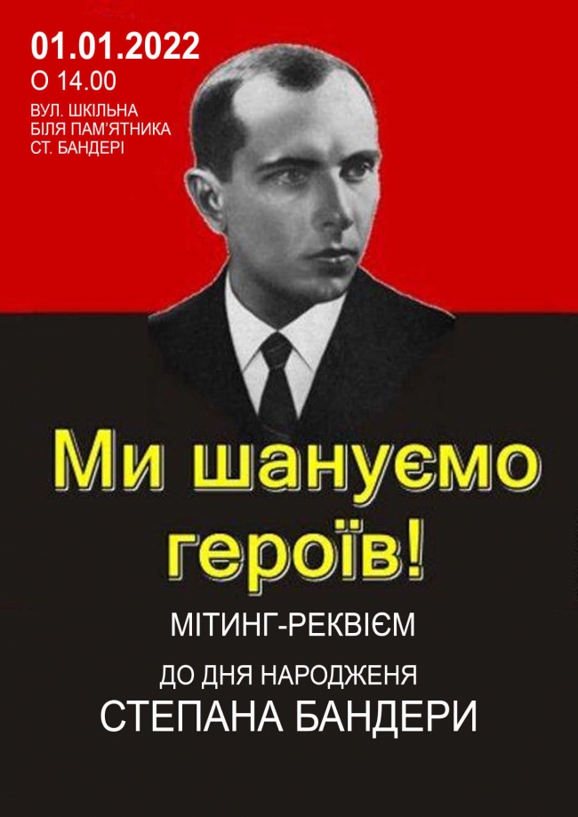 У перший день нового року відбудеться мітинг-реквієм біля пам’ятника Степанові Бандері у Здолбунові (вул. Шкільна). Початок – о 14.00.