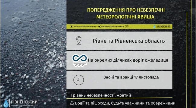 Обережно: ожеледиця! Прогноз погоди від метеорологів Рівненщини