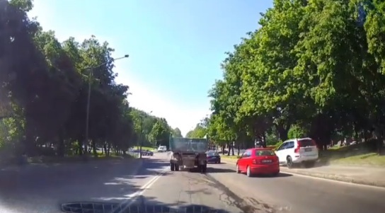 На відео чітко видно, що водій по вулиці Костромській вирішив обігнати усі автомобілі. Для цього той поїхав тротуаром.
