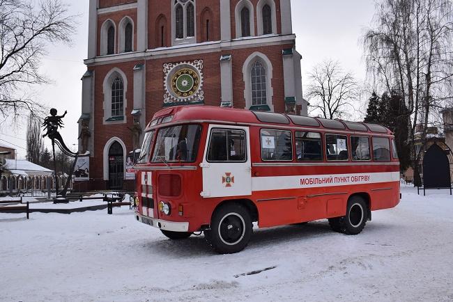 Зовні пункт обігріву виглядає як звичайний бус. Автівку яскравого червоного кольору важко не помітити. Він затуляє собою увесь вигляд на “Музичний майдан”. Щоправда, ні однієї людини в ньому, коли кореспондент “РВ” заглянула в автіку, не виявилося.