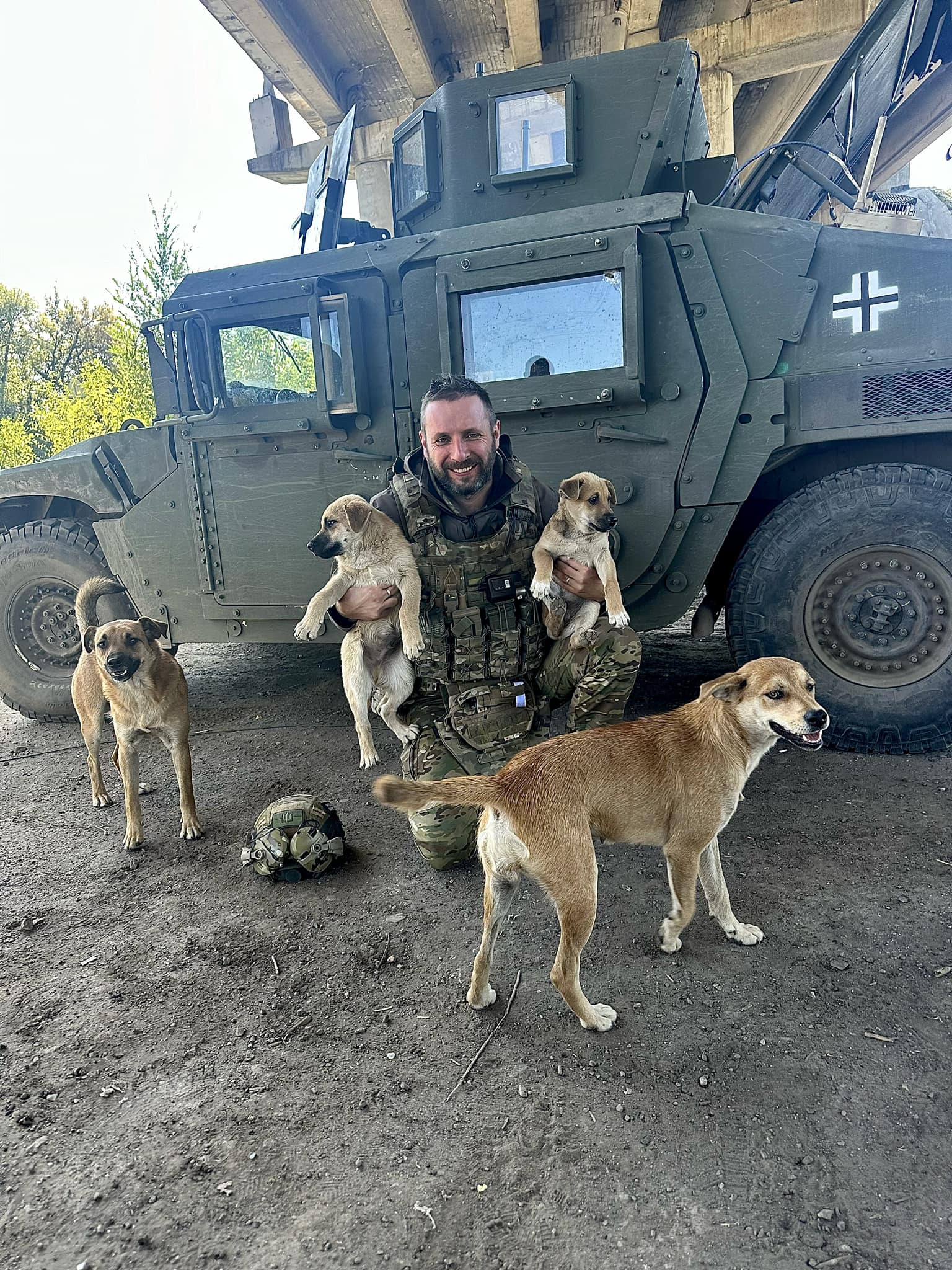 Серпень 2024. “Власники виїхали, хата згоріла. Ми вивезли їх там, де спокійніше”, – Володимир Парасюк про врятованих собачок. Фото: ФБ Володимир Парасюк