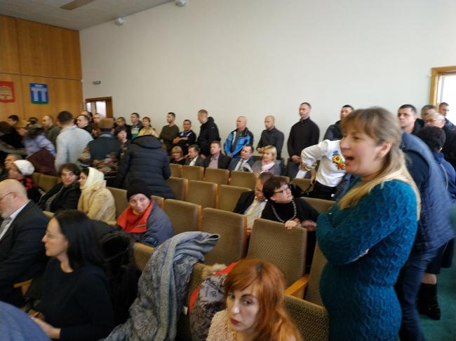 Десятки молодиків та працівники школи, які прийшли на сесію, почали протестувати і вимагати переголосування.