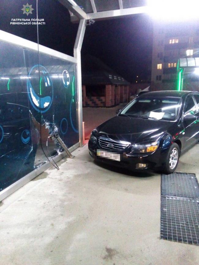 У неділю, за годину до півночі, патрульні отримали виклик на вулицю Гагаріна у Рівному, де сталась ДТП без травмованих за участю автомобіля КІА. 25-річний водій з Рівного не дотримався безпечного інтервалу та наїхав на скляну перегородку автомийки.