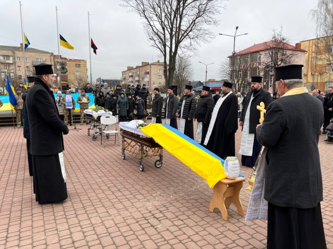 – Чин похорону було звершено у храмі Петра і Павла в Костополі. Після цього жалобна процесія пішою ходою вирушила на майдан Т.Г. Шевченка, де з героями прощалася громада: рідні та близькі, друзі, знайомі, колеги, військові, священики та представники міської влади, – розповіли у Костопільській міській раді.