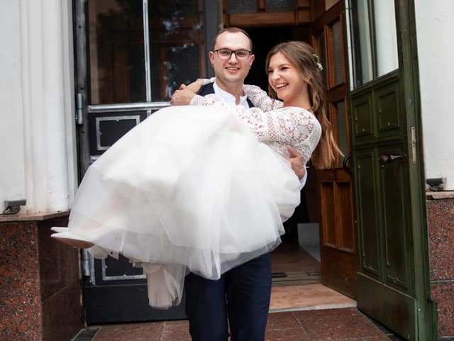 Привітати її прийшли рідні та відомі політики. Зокрема, молодих Ірину та Артема вітав міський голова Олександр Третяк.