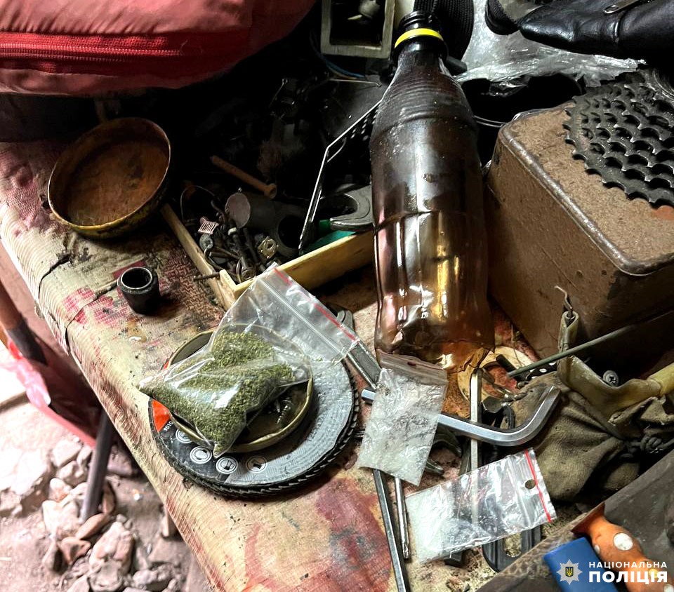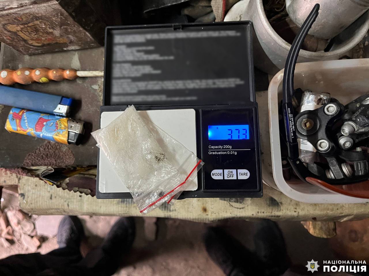 У підсобному приміщенні вилучили пристрій для вживання наркотиків із нашаруванням наркотичної речовини, сліп-пакет із канабісом вагою понад 8 грамів, пакетики із метамфетаміном вагою майже 4 грами.