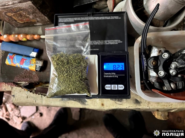 У підсобному приміщенні вилучили пристрій для вживання наркотиків із нашаруванням наркотичної речовини, сліп-пакет із канабісом вагою понад 8 грамів, пакетики із метамфетаміном вагою майже 4 грами.