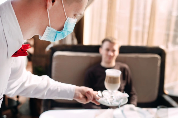 Всі офіціанти і персонал на кухні повинні весь час перебувати в масках, які прикривають ніс і рот, і не знімати їх ні в якому разі.