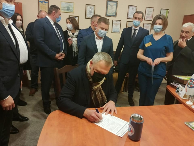 А також завітав до Центральної міської лікарні, де разом із Олександром Ковальчуком, головним лікарем Євгенієм Кучеруком заклали символічну капсулу під будівництво нового трансплантаційного центру.