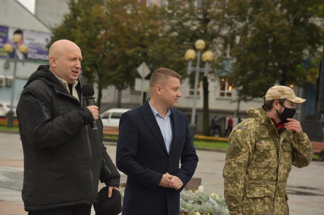 Також він звернувся до рівнян з проханням підтримати кандидатів від ЄС та Олександра Третяка на міського голову Рівного. Турчинов з Олександром познайомились на фронті: