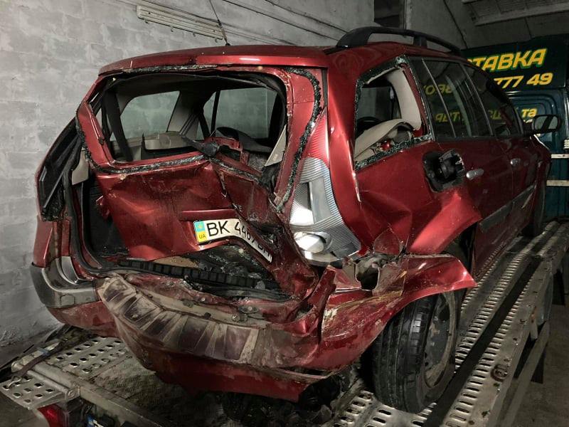 Працівник обласного управління поліції забрав у вівторок увечері після зливи з роботи свою доньку, щоб разом повернутись додому . На вулиці Макарова у Рівному офіцер зупинився, щоб пропустити зустрічне авто, і за якусь мить в “Рено” влетів ззаду “Опель Мовано”, водій якого “зловив гаву”, бо повертався втомленим з роботи та не зреагував на покажчик повороту. “Рено” перетворився на брухт, ремонтувати доведеться і “Опеля”. Обидва водії були тверезими. Ні вони, ні пасажирка “Рено” травм не отримали. Патрульні склали адмінпротокол на водія “Опеля” за скоєння ДТП. Обставини ДТП з’ясовує тепер страхова компанія.