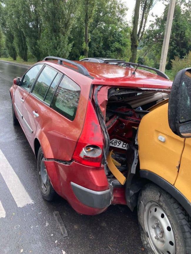 Працівник обласного управління поліції забрав у вівторок увечері після зливи з роботи свою доньку, щоб разом повернутись додому . На вулиці Макарова у Рівному офіцер зупинився, щоб пропустити зустрічне авто, і за якусь мить в “Рено” влетів ззаду “Опель Мовано”, водій якого “зловив гаву”, бо повертався втомленим з роботи та не зреагував на покажчик повороту. “Рено” перетворився на брухт, ремонтувати доведеться і “Опеля”. Обидва водії були тверезими. Ні вони, ні пасажирка “Рено” травм не отримали. Патрульні склали адмінпротокол на водія “Опеля” за скоєння ДТП. Обставини ДТП з’ясовує тепер страхова компанія.