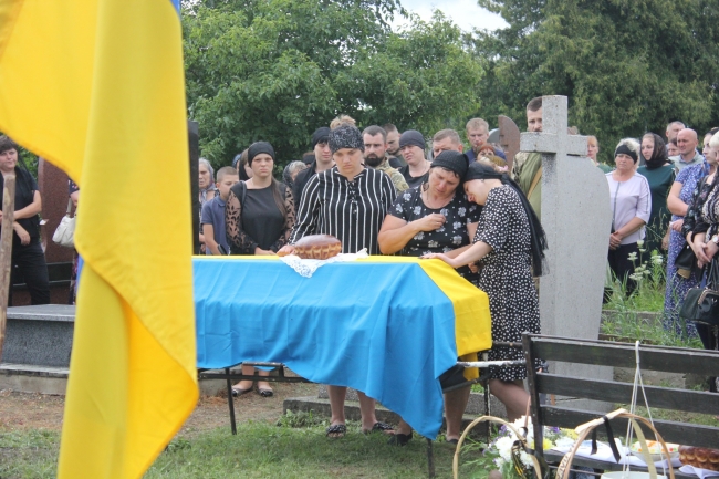 Під трикратні залпи із стрілецької зброї, під виконання всіма присутніми Державного Гімну України домовину з тілом опустили в могилу.