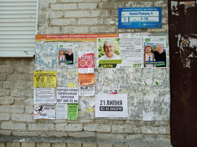 Зокрема, не зняли агітацію кандидата у народні депутати по 152 виборчому округу Олександра Курсика та кандидатів у народні депутати по 153 округу Андрія Мітюхіна, Володимира Валявки, Євгена Козакова, Володимира Цвіля, Віталія Ундіра, Віктора Щербачука.