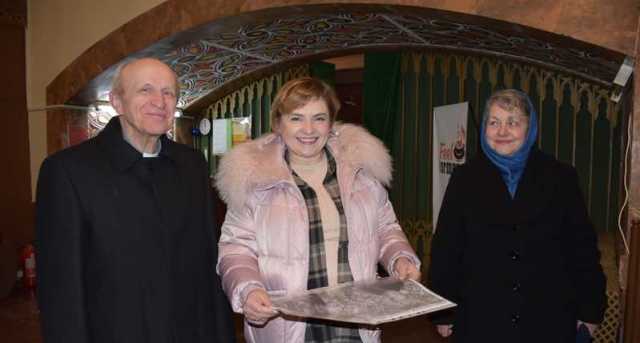 (ксьондз Владислав Чайка, директорка Рівненської обласної філармонії Елеонора Стеценко та краєзнавиця Валентина Данілічева)