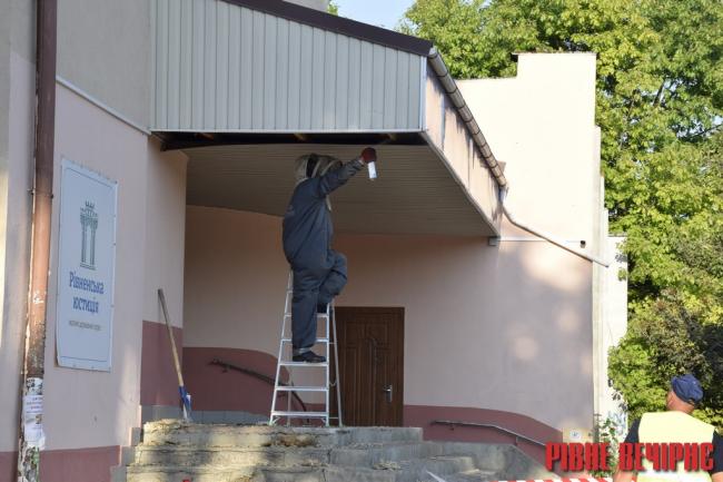 Рятувальник змушений був розібрати частину пластикової оббивки накриття над сходами, аби дістатися до ос.