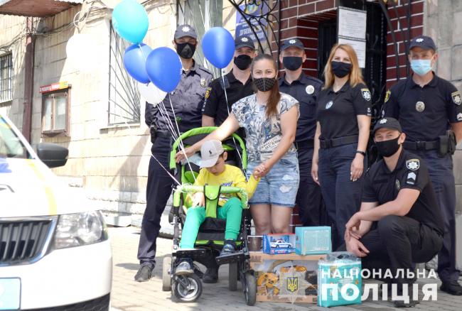 Для Карини це було неочікувано і вона вже хотіла звернути в інший бік. Натомість очі Тимофійка засяяли від побаченого і відступати було нікуди. Поліцейські привітали іменника, якому виповнилося вісім років.