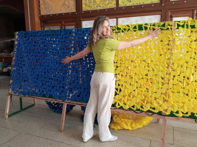 – Особливий український прапор, який повезуть на Донеччину й піднімуть над донбаськими териконами! Плели таку красу волонтери Рівненського обласного академічного театру ляльок: сєвєродонеччани Елла й Олег, школярі з Костянтинівки Костя й Коля, Марина Мушинська, хлопчаки з Рівного Назар, Вадим Нерета і Влад, рівняни Наталя, Мирослава, Капела бандуристів Рівненчанка, Іван Столярук. А всі жовто-блакитні смужечки нарізала наша неймовірна Надійка Полюхович, – повідомила у фейсбуці рівнянка Юлія Вишницька.