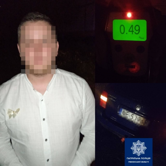 За усі вищезгадані порушення патрульні склали ряд адмінматеріалів: протокол за ч.1 ст.130 (Керування автомобілем в стані сп’яніння) КУпАП та винесли об’єднану постанову за ч.6 ст.121 (Керування транспортним засобом із неосвітленим номерним знаком) КУпАП, ч.10 ст.121 (Порушення правил перевезення дітей) КУпАП, ч.2 ст.126 (Керування транспортним засобом особою, яка не має права керування) КУпАП.
