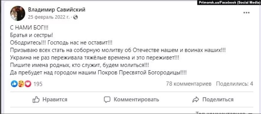 Коли росіяни окупували місто, то отець з громадою записували звернення до російського диктатора Володимира Путіна, в якому говорили, що в Україні нікого не треба «освобождать». Також в соборі продовжували молитися за Україну, армію та волонтерів. Така діяльність дуже не сподобалася росіянам.